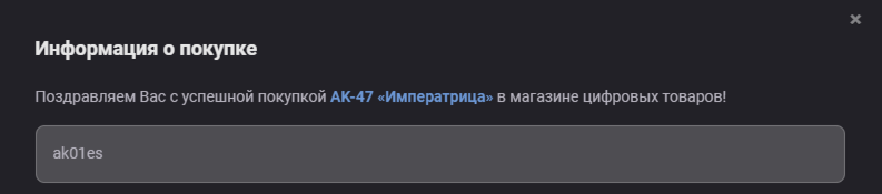 После покупки данной модели оружия, Вам выпадет уникальный ключ в таком формате: